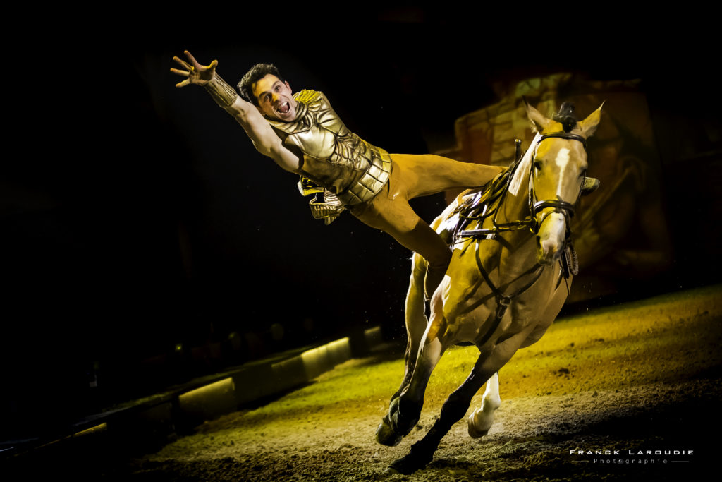 Issue de la grande tradition du cirque équestre, la voltige jockey impressionne par sa virtuosité, sa fougue et son intensité.